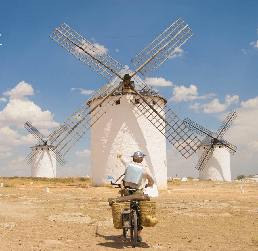 Nuestras señas de identidad más universales son la cerámica y El Quijote. No han de faltar un botijo y una lanza entre el bikepacking. Es ésta una cruzada como no ha habido antes otra igual, más bien "una cruzada de cables" que es lo que le diría Sancho a su caballero y señor en un rato de sinceridad y sosiego. El sentido del humor no es exclusivo de mi tierra pero es lo que más envidio cuando contemplo la obra del ser humano. Mis ídolos: Gila, Forges, Quino, Le Luthiers, Faemino y Cansado, Ignatius y los locos manchegos de La Hora Chanante.