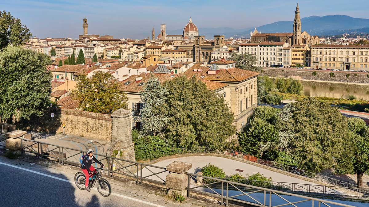 Recorrer Florencia en bicicleta es una excelente opción, ya que es una ciudad mayormente plana con carriles bici y zonas peatonales, permitiendo acceder a monumentos como el Ponte Vecchio, la Piazza della Signoria, Santa Maria Novella y el Palazzo Pitti, con opciones que te llevan por rincones escondidos y puntos panorámicos como la Piazzale Michelangelo, además de ser ideal para descubrir barrios locales: Pedalea por Oltrarno, Santo Spirito y áreas menos turísticas así como la Toscana circundante. Aventúrate en las colinas de Chianti, Fiesole o a lo largo del río Arno para excursiones de un día.